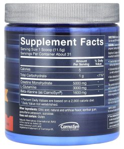 Muscle StrengthMuscle EnduranceDelays FatigueNaturally & Artificially FlavoredDietary SupplementCarnoSyn® Carnosine SynthesizerQuality Promise Tested & Trusted®BodyTech’s Creatine + Glutamine with Beta-Alanine combines nutrients essential to most training regimens.Creatine helps to improve strength and performance during high intensity exercise and training. Glutamine helps support muscle growth and recovery as well as immune health. Beta-Alanine helps support muscle strength, endurance and overall athletic performance.