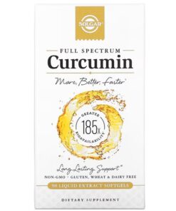 For the first time, Solgar transforms poorly absorbed curcumin, from a fat-soluble to a water-soluble phytonutrient…making it immediately body-ready, faster absorbed and more active than ever before.♦ It’s so advanced, just 40 mg of curcumin in one softgel delivers the equivalency of dozens of 100 mg capsules of standardized curcumin extract. Now, for brain, joint, and immune health – Solgar changes what you believed was possible from Curcumin…forever. Solgar® Full Spectrum Curcumin…one softgel, once a day-185x better.♦