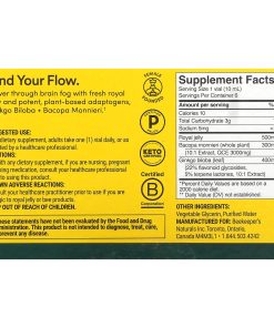 Fresh Royal Jelly 500 mg Per Serving For Clarity and Focus Made with Ginkgo Biloba + Bacopa Monnieri Dietary SupplementClarity & FocusGluten FreeCaffeine FreeFemale FoundedCertified PaleoKeto CertifiedCertified B CorporationFind Your Flow. Power through brain fog with fresh royal jelly and potent, plant-based adaptogens, Ginkgo Biloba + Bacopa Monnieri.
