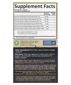 Rice fiber, hypromellose (veggie capsule). NaturaNectar Bee Propolis Ultimate does not contain alcohol, sugar, starch, wheat, gluten, yeast, milk (lactose), egg, shellfish, artificial preservatives, flavors, dyes or colors.Made in USA from international ingredients.