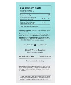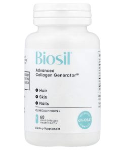Clinically Proven Patended ch-OSA® Complex 2 in 1 – Generates & Protects Your Own CollagenThickens & Strengthens HairReduces Fine Lines & WrinklesStrengthens Nails 100% Vegan FriendlyFree From Animal CollagenGluten FreeDairy & Soy Free Non GMO Project Verified For Skin, Hair & NailsDon’t take collagen. Make your own. Our 2 in 1 formula Biosil is different; it doesn’t contain collagen. Instead, it’s clinically proven to activate your cells into making more of your own collagen – the best, most powerful collagen for you. And that’s not all. It also protects the collagen you already have. That’s our unique 2-in-1 formula.+Beautiful results take time:1-3 months: Stronger nails, fuller, shining hair, and glowing skin*4-6 months: Improved wrinkles, fine lines, and skin elasticity*7+ Months: Peak results for stronger, thicker hair*Clinically ProvenMore skin elasticity ‡*Reduction in fine lines & wrinkles ‡*Stronger & thicker hair ‡*Stronger, smoother nails ‡*For results you can see, feel, and show ‡Clinical trial results versus placebo*Results may vary