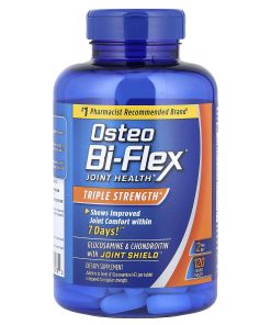 #1 Pharmacist Recommended Brand¹Triple Strength^Shows Improved Joint Comfort within 7 Days!†Glucosamine & Chondroitin with Joint Shield™2 Per DayDietary SupplementFree of GlutenNon GMO Range of MotionMade to Move®During the day, you move your joints in so many different ways, getting up, sitting down, bending and flexing.Osteo Bi-Flex® is America’s #1 Joint Health brand² and supports joint comfort, so you can enjoy a range of motion for your day’s activities.Osteo Bi-Flex® Triple Strength contains glucosamine which helps to strengthen joints while helping maintain joint cartilage essential for comfortable joint movement.Osteo Bi-Flex® is manufactured under the highest standards for product quality, purity and potency.Start feeling the difference in your joint comfort in just 7 days with the power of Joint Shield™!†Helps To: Strengthen JointsSupport FlexibilitySupport MobilityJoint Shield™ is our clinically studied beneficial herbal ingredient that has been shown to significantly improve joint comfort in just 7 days.† It is a highly concentrated form of Boswellia serrata that helps soothe your joints while improving joint function for comfortable movement.†Based on two human studied with 5-Loxin Advanced® where subjects rated their joint health over time, subjects’ joint health improved with 7 days, and continued to improve throughout the duration of the studies.¹Based on the results of the Pharmacy Times Survey of Pharmacists’ OTC Recommendations who recommend a “joint health” dietary supplement, 2021-2022.²Source: IRI Total US – Multi Outlet: Latest 52 weeks ending April 25, 2021. ^Refers to level of Glucosamine HCI per tablet compared to regular strength.