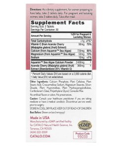 Red Algae Calcium – 720 mg Per ServingNatural Vitamin C – 90 mg Per ServingSupport Maternal & Fetal Skeletal HealthEnhance ImmunityClinically Proven Branded IngredientsDietary SupplementNaturalWholesomeQuality Potency EfficacySuitable for VeganscGMP – Current Good Manufacturing PracticesHealth and Beauty from within. CAre, viTAlity, Longevity. This is what CATALO stands for. It is our philosophy that true health and beauty radiates from within and we are committed to understanding your health needs and enhancing health through superior natural health supplements that nourish your body.The importance of sufficient calcium & vitamin C intakePreconception Period – Boost Immunity and Strengthen SpinePregnancy – Assist Bone DevelopmentPost-Pregnancy and Breastfeeding – Supplement Breast Milk with CalciumRed Algae Calcium offers a wide spectrum of highly bioactive and natural mulit-minerals which are it easier for the body to digest, absorb and utilize. Sufficient supply of calcium also helps to ease nighttime limb movement and leg cramps during pregnancy.¹Acerola Cherry Extract contains natural vitamin C, which enhances calcium and iron absorption, and strengthens mothers’ immunity.CATALO Vegetarian Calcium FormulaMade from unpolluted natural plant source Red Algae Calcium from Iceland. Red Algae Calcium naturally contains Calcium, Magnesium, different minerals and other trace elements. This sustainable algae source is clinically proven to improve bone and joint health.¹Specially enriched with Acerola Cherry Extract, each serving provides 90 mg of natural vitamin C and 720 mg of natural calcium, meeting the nutritional needs of mothers. Main Benefits: Support bone health during pregnancyPromote fetal bone tissue developmentSupport immunity Suitable for individuals: Women preparing for pregnancy, pregnant and lactating woman ¹Frestedt, J ., et al. 2008, Nutrition Journal, Vol. 7:9. (Refer to Aquamin™ Sea Algae)
