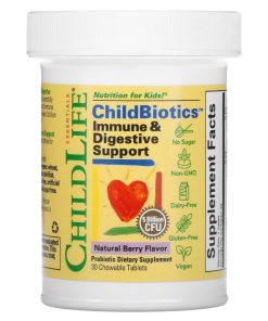 Nutrition for Kids!®EssentialsGluten FreeDairy-FreeNon-GMOProbiotics Dietary SupplementChildLife® ChildBiotics™ Immune & Digestive Support contains 4 proven probiotic strains carefully formulated for on-the-go digestive, respiratory, and immune support. Each great-tasting chewable tablet provides 5 billion CFU to supplement your child’s probiotic intake.ChildLife® ChildBiotics™ Immune & Digestive Support tablets are packaged in premium desiccant-lined bottles for potency protection. ChildLife® uses only the highest quality ingredients. Pediatrician ApprovedChildLife Essentials® is formulated by Dr. Murray Clarke, leading Naturopathic Pediatrician in the U.S.A. ChildLife® supplements provide the highest quality ingredients available, which are all natural, clean, pure, and fresh.
