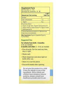 EssentialsFor Babies & InfantsFormulated by Dr. Murray C. Clarke, D. Hom., L.Ac.USDA OrganicSafe & GentleSoothes Stomach Discomfort From Colic, Teething, and HiccupsDietary SupplementCertified Organic by Oregon TilthKosher ParveGluten FreeCasein FreeAlcohol FreeEach serving of ChildLife® Organic Gripe Water provides:Organic GingerHelps relieve nausea, indigestion, bloating, and stomach cramps.Organic FennelUsed to relax a spasmodic colon and release trapped gas.Organic DillHelps dispel flatulence, settle the stomach, and calm the digestive tract.Organic Kiwifruit Extract (Actazin™)Sourced from New Zealand, Kiwifruit Extract (Actazin™) helps maintain bowel regularity, as well as the natural ecology of “good” bacteria in your child’s digestive tract.ChildLife Essentials® is formulated by Dr. Murray Clarke, leading Holistic Pediatrician in the U.S.A. ChildLife supplements provide the highest quality ingredients available, which are all natural, clean, pure, and fresh.ChildLife® Organic Gripe Water is an all natural, soothing remedy that provides your baby with relief from the bloating, gas, and stomach discomfort often associated with colic, teething, and hiccups.Doctor formulated, ChildLife® Organic Gripe Water combines the gentle effectiveness of Ginger, Dill, Fennel, and pure New Zealand Kiwifruit Extract (Actazin™) to ensure fast acting relief for your little one, all in a convenient dropper dosage.