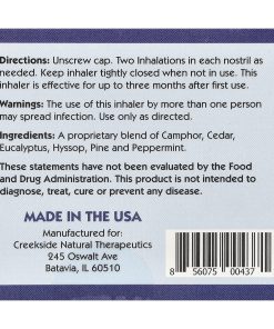 Relieves Nasal CongestionSoothes Cold and Allergy SymptomsHelps Manage Chronic Nosebleeds100% Natural Essential Oil BlendCreekside Naturals Sniffle Sticks are all-natural aromatherapy nasal inhalers that soothe and moisturize irritated nasal cavities, providing relief from cold and allergy symptoms. Made of 100% essential oils, daily use along with a humidifier helps control sniffles and clear your nasal passages. Sniffle Sticks are pocket-sized and great for on-the-go relief!