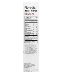 Salus Since 1916Liquid Iron and Vitamin Formula Dietary Supplement Supports The Body’s Formation of Red Blood Cells Easy to Digest and AbsorbNon-Constipating FormulaNo AlcoholNo PreservativesNo ColoringsSuitable For VegetariansWith iron and B vitamins to support healthy iron levels to maintain energy.Floradix Iron + Herbs contains iron from ferrous gluconate, vitamin B1 (from thiamin hydrochloride), vitamin B2 (from riboflavin 5′-phosphate, sodium), vitamin B6 (from pyridoxine hydrochloride) and vitamin B12 (from cyanocobalamin) to support energy.Iron supports the body’s formation of red blood cells and hemoglobin. Healthy iron levels are essential to maintain energy for a healthy, active life.Containing nutritional iron in a gentle-to-digest and easily absorbed, non-constipating formula with essential B-complex vitamins, and herbal extracts. Floradix Iron + Herbs contains selected herbs and several fruit juice concentrates for a pleasant taste. About Salus Since the foundation of Salus Haus in 1916, the utmost importance has been placed on the careful selection of ingredients for our products. At Salus we do not use genetically modified raw materials. We combine nature with innovation and quality, developing new products with the use of state-of- the-art analytical methods in our laboratories. Salus applies the highest quality standards in Europe by carefully controlling the production of raw materials and finished products.