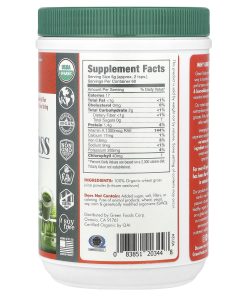Feel the Difference with 100% Organic Juice PowderFreshly Squeezed Pure Juice PowderSince 1979Nutrient-Rich SuperfoodsNatural, Energizing, NourishingAbsolutely No FiberSmooth & Great TastingRevitalize – Purify – AlkalizeUSDA OrganicDietary SupplementKosherNatural Vegan ProductNon GMO Certified OrganicRawGluten FreeSoy FreeCertified Organic by QAIWhy Green Foods?Green Foods core belief: The best way to nourish our bodies for peak performance is with natural, organic and bioavailable products that provide essential nutrients for optimal health.Our natural supplements offer the extraordinary nutrients found in fresh grasses, fruits, vegetables, herbs and other healthful whole foods.Leveraging our decades of experience and perfected techniques, we harness the best of each ingredient via our own proprietary award-winning juicing and spray-drying process.For over 40 years, Green Foods has been the world-wide leader in natural superfoods.Our products are sold throughout the world in over 50 countries. Our passion is to spread the benefits of healthy, organic, natural supplements on a global scale, while reinforcing our commitment to respecting our environment and making our customer’s overall wellbeing our #1 priority.Ever had a shot of wheat grass at a juice bar?Green Foods organic wheat grass juice powder is gently juiced & spray-dried under low temperatures to offer all the benefits of freshly squeezed wheat grass in a convenient & easy to use powder.Benefits of Wheat Grass ShotsComplete source of amino acids, enzymes, chlorophyll, vitamins and minerals.Supports healthy digestion.Encourages gentle detoxification.Stimulates absorption & assimilation of nutrients.Naturally balances alkalinity.Boosts energy levels and endurance.Promotes immune health and well-being.