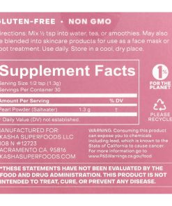 Made with Seawater PearlsHair, Skin, NailsGluten FreeNon GMOA Timeless TreasureElevate your self-care ritual with the opulent touch of seawater Pearl Powder. Renowned for centuries in beauty traditions around the world, this ocean-based powder can be mixed into your favorite beverage or topical skincare product. It’s a simple way to sprinkle a bit of sparkle into your self-care routine.