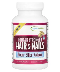 3x Biotin! Biotin – Silica – CollagenAdvanced Strength & ProtectionNutrient-Rich Formula for Radiant Texture & Vibrant Shine, Plus HorsetailDietary SupplementRevitalizing Nutrient-Rich FormulaA unique blend of vitamins, minerals and botanicals to nourish the body and support the production of healthy hair, skin & nails.Biotin – Enhances the strength and luster of dry, brittle nails.Collagen – A building block for connective tissue.Horsetail extract – Supplies a wide spectrum of minerals – including a full 14 mg of Silica for structural support of hair and nails.Vitamin A & C – Provide antioxidant activity to help maintain cell integrity.Zinc, Copper & Calcium – Deliver nutritive support for the body.Liquid Soft-Gels – An advanced nutrient delivery system.Natural Beauty: More Than Just Skin Deep!Even the finest shampoo and conditioner won’t fix hair that’s starving for nutrients; and expensive nail polish will only hide dull, brittle nails. That’s because long, radiant hair and strong, healthy nails start from within. Longer Stronger Hair & Nails® is a nutrient-rich complex than can help you achieve a naturally vibrant & healthy-looking appearance.Combat the Signs of AgingOver time, the cumulative effects from sun exposure, environmental pollution, dehydration and poor dietary choices can wreak havoc on the body and its overall appearance. Taking proactive measures with Longer Stronger Hair & Nails® to counter these damaging effects can not only improve the way you look, but also enhance the way you feel. It’s never too late to restore that youthful vitality!AppliednutritionApplied Nutrition® is committed to developing science-based products that exceed the highest standards for quality and purity. As a leader in innovation, we continuously strive to bring forward new ideas and groundbreaking formulas that enhance health and well-being.