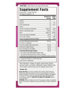 Soybean oil, gelatin, purified water, glycerin, beeswax, dextrin, soy lecithin, maltodextrin, titanium dioxide (color), silicon dioxide, caramel (color) and red cabbage extract (color). Contains: Soy