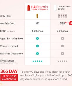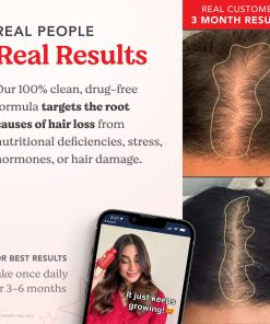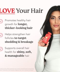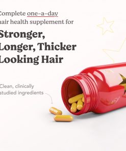 Clean & Drug-FreeScience-Backed Hair Growth SupportJust One Capsule a DayDietary SupplementCertified Gluten FreeCruelty-FreeNut, Soy &Dairy FreeBPA-FreeNo Binders, Fillers or PreservativesWomen Owned®A clean, one-a-day, hair nourishing supplement with clinically-studied, vegan ingredients to help maintain stronger, longer, thicker-looking hair. Our proprietary blend of essential hair-loving vitamins, minerals and herbs, plus a potent super antioxidant complex, synergistically helps promote healthy hair growth, retention and follicle strength from the inside out.