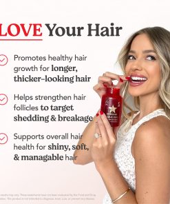 Two Vegan Gummies a DaySuper Antioxidant ComplexSupports Stronger, Longer, Thicker-Looking HairDietary SupplementCertified Gluten FreePETA Approved; Cruelty-Free; Global Animal Test Policy100% Clean & Non-ToxicNo Artificial Flavors or ColorsNut, Soy & Dairy-FreeNo Binders, Fillers, PreservativesJust 2 Yummy Gummies a DayAward-winning and delicious hair nourishing supplement with clinically-studied vegan ingredients to help maintain stronger, longer, thicker-looking hair. Our proprietary blend of essential hair-loving vitamins, minerals and herbs, plus a potent super antioxidant complex, synergistically helps promote healthy hair growth, retention and follicle strength from the inside out.