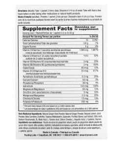 (Adults): Take 1 packet 2 times daily. Dissolve in 4-6 oz of water. Take with food a few hours before or after taking other medications or natural health products.Pour sachet in an empty glass. Add 4 – 6 oz water. Watch it fizz. Taste the deliciousness!