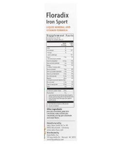 Liquid Mineral & Vitamin FormulaDietary SupplementVegan Since 1916No Alcohol No Preservatives No Colorings Gluten-Free Non-ConstipatingWith iron, magnesium, and vitamin D to support healthy iron levels and athletic performance. Supports healthy blood formation and oxygen transportSupports muscle functionNon-constipating formula Floradix Iron Sport liquid formula is easily absorbed and gentle to digest. Athletes have an increased iron requirement due to high intensity training; iron contributes to normal oxygen transport in the body and the normal formation of red blood cells and hemoglobin. Magnesium and vitamin D contribute to normal muscle function and support bone maintenance, whereas magnesium and zinc contribute to normal protein synthesis.Floradix Iron Sport is easy to take and helps safeguard the balance of iron and vitamins B1, B2, niacin, B6, B12, C and D, magnesium, zinc and copper. As these nutrients are already dissolved, they are absorbed more quickly by the digestive system compared to tablets.Floradix Iron Sport contains selected herbs and several fruit juice concentrates for a pleasant taste. About Salus Since the foundation of Salus Haus in 1916, the utmost importance has been placed on the careful selection of ingredients for our products. At Salus we do not use genetically modified raw materials. We combine nature with innovation and quality, developing new products with the use of state- of-the-art analytical methods in our laboratories. Salus applies the highest pharmaceutical quality standards in Europe by carefully controlling the pro- duction of raw materials and finished products.