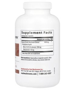 LongevityDietary Supplement Quality Grown Verified For Active Compounds Gluten Free Non GMO Vegan Our Commitment To You 3rd party lab verified for quality Dual extracted for improved bioavailabilityGuaranteed potency: 25% Beta-glucans and 4% triterpenoids per capsuleOur guarantee: This product is verified for active compounds. There are no added starch, grains or mycelium.