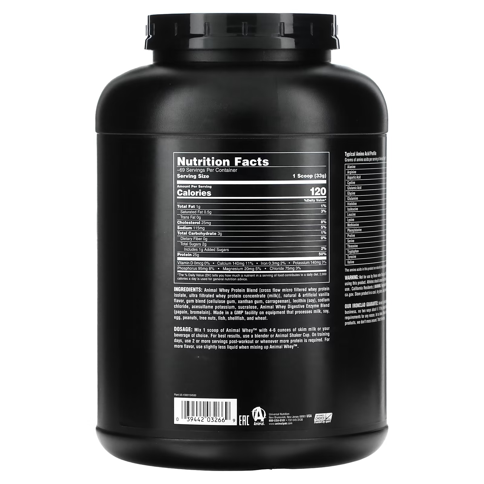 Who we are in 1983, Animal was founded with the birth of Animal Pak, the venerable training “pack” that started it all. Born from the real needs and desires of professional bodybuilders, Animal has grown prodigiously over the decades. Today, as yesterday, the name Animal stands for trust, integrity and a unique no nonsense approach to the game. Animal also represents a group of products that have stood the test of time, proven again and again in the labs, and in the trenches where it counts most…The gym and the stage. Dedicated to serious nutrition for the serious athlete, Animal is your choice when it comes to complete and comprehensive nutrition. Animal. The choice of champions. What Animal Whey is muscle food, pure and simple. Protein is the raw material capable of building the mass you desperately seek. For the most dedicated lifters, heavy training and clean eating just aren’t enough. They need that little extra. And that edge can be found in Animal Whey. Among the most basic, no-nonsense bodybuilding nutritional staples, Animal Whey is easily digested and quickly processed whey protein, providing the building blocks needed to grow bigger, stronger and better. It is muscle food, in its purest form.