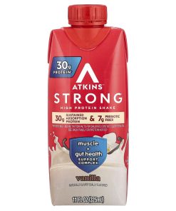 Strong†30 g Protein1 g Sugar*1 g Net Carbs**21 Vitamins & Minerals*Naturally & Artificially Flavored Muscle + Gut Health Support ComplexKosher Dairy Certified Gluten Free30 g sustained absorption protein & 7 g prebiotic fiber. *per serving – see nutrition facts for calorie content .5 g of total fat content. †Helps maintain lean muscle mass when used in conjunction with an exercise routine. **Total Carbs (8 g)- Fiber (7 g)= 1 g Net Carbs