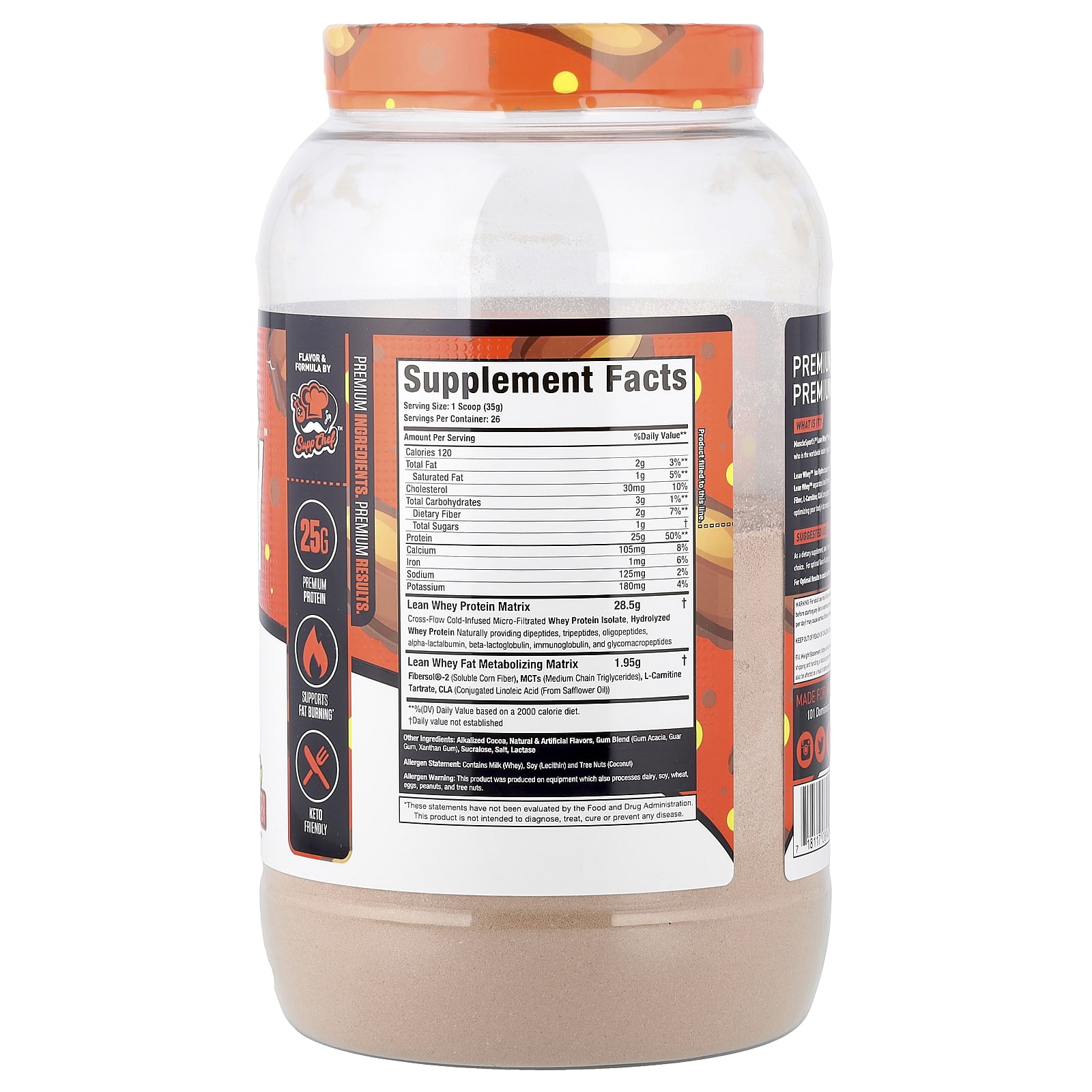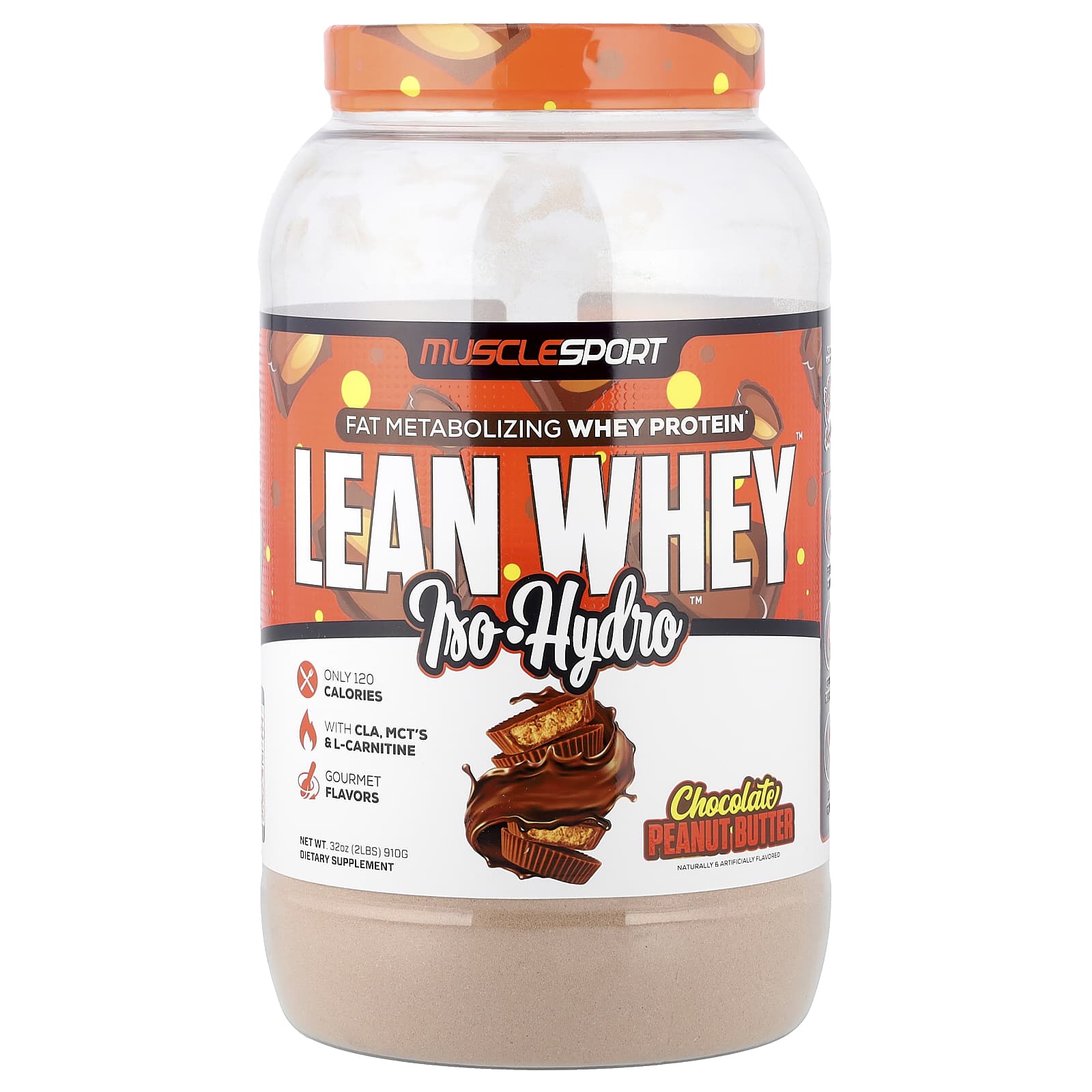 Fat Metabolizing Whey ProteinOnly 120 CaloriesWith CLA, MCT’s & L-CarnitineGourmet FlavorsNaturally & Artificially FlavoredDietary SupplementFlavor & Formula by Supp Chef™25 g Premium ProteinSupports Fat BurningKeto FriendlyPremium Ingredients. Premium Results.What Is It? MuscleSport’s™ Lean Whey™ Iso Hydro is a premium protein supplement formulated by the Supp Chef™ who is the worldwide leader in gourmet flavored protein options. Lean Whey™ Iso Hydro boasts the highest quality and most easily digestible protein sources available. Lean Whey™ separates itself from the competition by utilizing a Fat Metabolizing Matrix. A Blend of Fibersol™ Fiber, L-Carnitine, CLA (conjugated linoleic acid) and MCT’s, synergistically working together in optimizing your body’s fat metabolism.