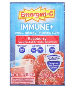 1000 mg Vitamin CFlavored Fizzy Drink Mix with Other Natural FlavorsActivates† – Beta Via®Supports‡ – Zinc, Vitamin CFortifies∼ – Vitamin DDietary SupplementTriple Action Formula Strengthens Your Immune System§Caffeine-FreeGluten-FreeVegetarianNatural Sweeteners & FlavorsEmergen-C Immune+: A thoughtfully designed, triple action formula that activates, supports and fortifies your immune system.Power Up! Emergen-C Immune+ is a triple action formula that activates, supports, and fortifies your immune system. The power-packed formula provides key nutrients your body needs like Vitamin C, Vitamin D, and Zinc, as well as BetaVia®, a beta glucan that supports your immune health.’ So power up your day and Emerge your Best!Activates:†Activates key cells in your immune system with BetaVia®, a natural botanical ingredient that supports your immune healthSupports:‡Supports your immune health with 1,000 mg of Vitamin C and an excellent source of ZincFortifies:~Fortifies your body with Vitamin D for a triple layer of immune support§Emergen-C Immune+ Triple Action is a delicious addition to your wellness routine. To help strengthen your immune system, take along with a healthy diet, quality sleep, and exercise.