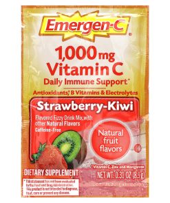 Daily Immune SupportAntioxidants†, B Vitamins & ElectrolytesNatural Fruit FlavorsAs Much Vitamin C as 10 Oranges!^Flavored Fizzy Drink with Other Natural FlavorsCaffeine-Free, Gluten-Free, VegetarianNatural SweetenersNaturally Sourced ColorsDietary SupplementFeel the Good®Naturally, It’s Good for you!Delicious Strawberry-Kiwi flavor? Check! Fun and fizz? Check! With each sip, you can feel the essential nutrients flow through your body in a wave of Emergen-C® rejuvenation. If feeling good is your thing, you found the right box.Immune Support: 1,000 mg of Vitamin C plus other antioxidants zinc and manganese support your immune system.Energy: 7 B vitamins including B1, B2, B3, B5, B6, B9 and B12 enhance energy naturally without caffeine.‡Electrolytes: Great for post-workout, replace key electrolytes lost through perspiration.†Vitamin C, Zinc & Manganese^Based on the USDA. gov nutrient database for a large, raw orange