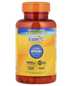 Supports Upper Respiratory HealthThe Better Vitamin C®1,000 mg Maximum StrengthNon GMOClinically Studied Vitamin CStomach FriendlyDietary SupplementSuitable for VegetariansImmune & Upper Respiratory Health SupportEster-C® is the unique immune health formula containing a proprietary, clinically studied Vitamin C that stays in your immune system for 24 hours.†Ester-C® Vitamin C is clinically shown to last longer than regular vitamin C. That’s because Ester-C® Vitamin C is carefully formulated to contain vitamin C metabolites, the same metabolites that are naturally produced by your body and help enhance the retention of vitamin C by your white blood cells, a vital part of your immune system. So once you take your daily dose of Ester-C® Vitamin C, it gets into your white blood cells, and stays there – for up to 24 hours. Vitamin C also contributes to the health of your upper respiratory tract, plus, Ester-C® Vitamin C is manufactured without chemicals to neutralize pH, which means it’s non-acidic and gentle on your stomach. Ester-C® is kind of support you can count on 24/7!Ester-C® Vitamin C lasts longer than regular Vitamin C in White Blood Cells over 24 hours!†Enjoy the benefits of Ester-C® Vitamin C every day! 24 Hour Immune SupportClinically studied to last longer than regular Vitamin C† Non-acidic and gentle on the stomachSupports upper respiratory healthPotent antioxidant supportNot all Vitamin C is created equal … There is only One Unique Ester-C® formula†Ester-C® Vitamin C has been clinically studied to stay in your white blood cells for up to 24 hours, which is longer than regular Vitamin C. White blood cells are an important part of the immune system.