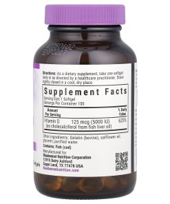 Bluebonnet Nutrition, Vitamin D3, 125 mcg (5,000 IU), 100 Softgels