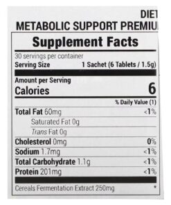 Maltodextrin, rice koji powder, isomalto oligosaccharide, yeast peptide, digestion resistant dextrin, zinc yeast, cinnamon powder, a-lipoic acid, spore lactic acid bacteria, ginger extract, papaya extract, chromium yeast, l-carnitine fumarate, virgin coconut oil powder, gymnema sylvestre extract, dextrin, black pepper extract, crystal cellulose, calcium stearate, silicon dioxide, niacin, chitin chitosan, vitamin B2, vitamin B1, vitamin B6, folic acid.