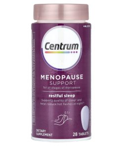 For All Stages of MenopauseSupports Quality of Sleep and Helps Reduce Hot Flashes at Night‡Dietary Supplement Proudly Manufactured in a GMP Facility Made for You Part of a line of products, specifically designed to support your needs through perimenopause and menopause. Trusted Science Backed by 40+ years of nutritional science. Centrum is the most clinically studied multivitamin brand in the world. Expert Recommended Brand The #1 Doctor and #1 Pharmacist recommended Multivitamin Brand.Hormone-free & melatonin-free 2-in-1 formula that helps relieve disruptive symptoms of Menopause Includes geniVida®, clinically studied to help minimize the frequency and duration of hot flashes ‡Includes DailyZz™, clinically studied to support quality of sleep and next day cognitive function†Pair with Centrum Multivitamin Hot Flash Support or Centrum Clear Mind & Calm Mood for a daily routine†A clinical study showed an improvement in quality of sleep and next day cognitive function after 30 days of nightly use of DailyZz™‡A clinical study showed a significant reduction of hot flashes after12 weeks of daily use of geniVida®